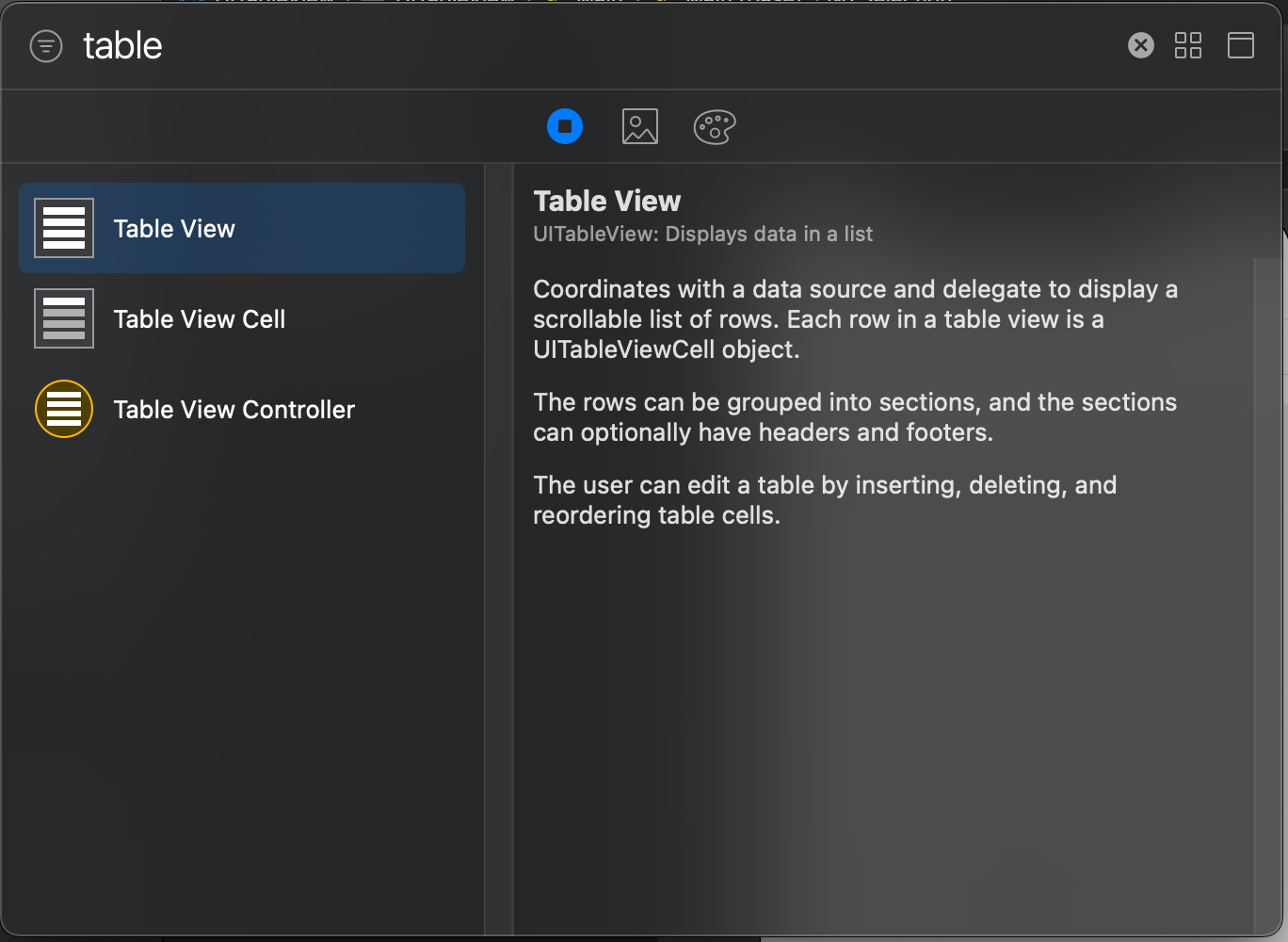 TableView는 화면에 목록을 표시하기 위한 UI구성요소이다.