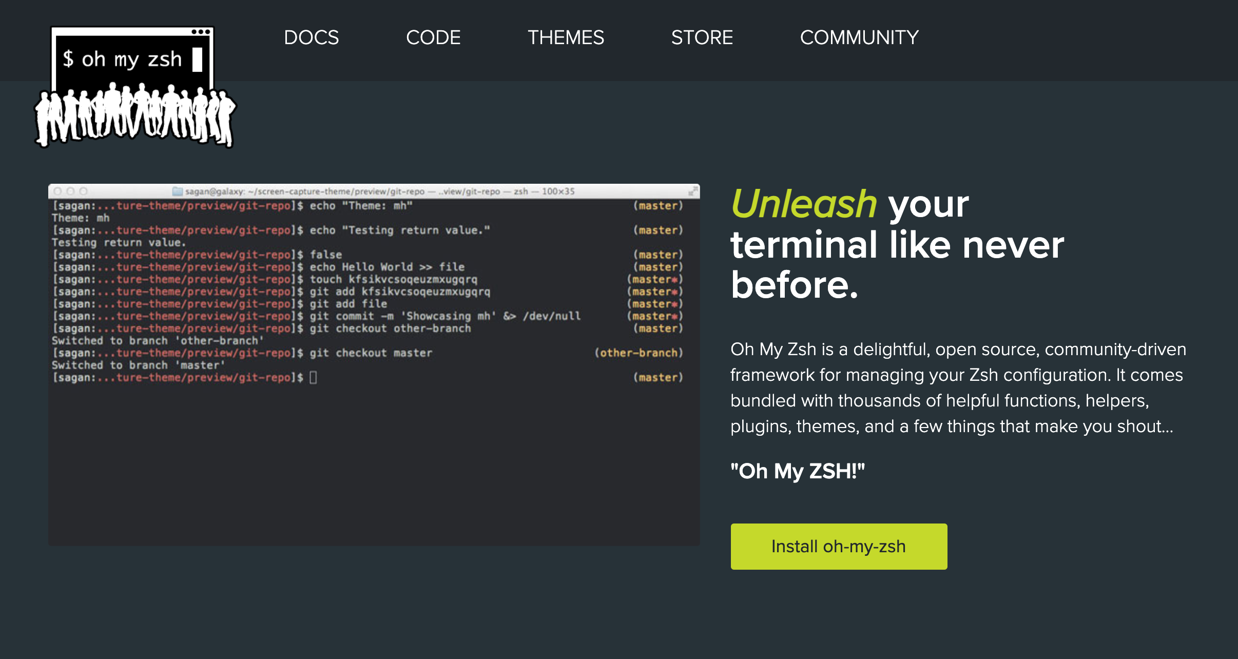 Oh-My-Zsh is a delightful, open source, community-driven framework for managing your ZSH configuration. It comes bundled with several helpful functions, helpers, plugins, themes, and a few things that make you shout... OH MY ZSH!