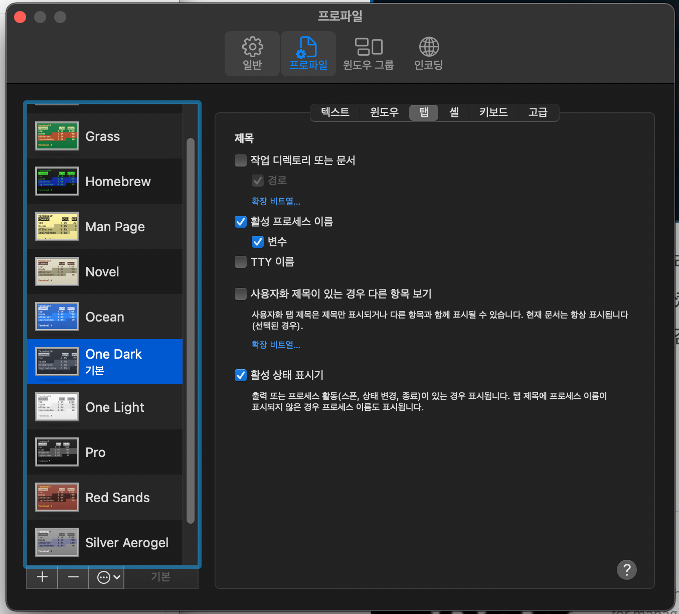6. 프로파일-탭 탭에서 다음의 사항을 변경한다.
