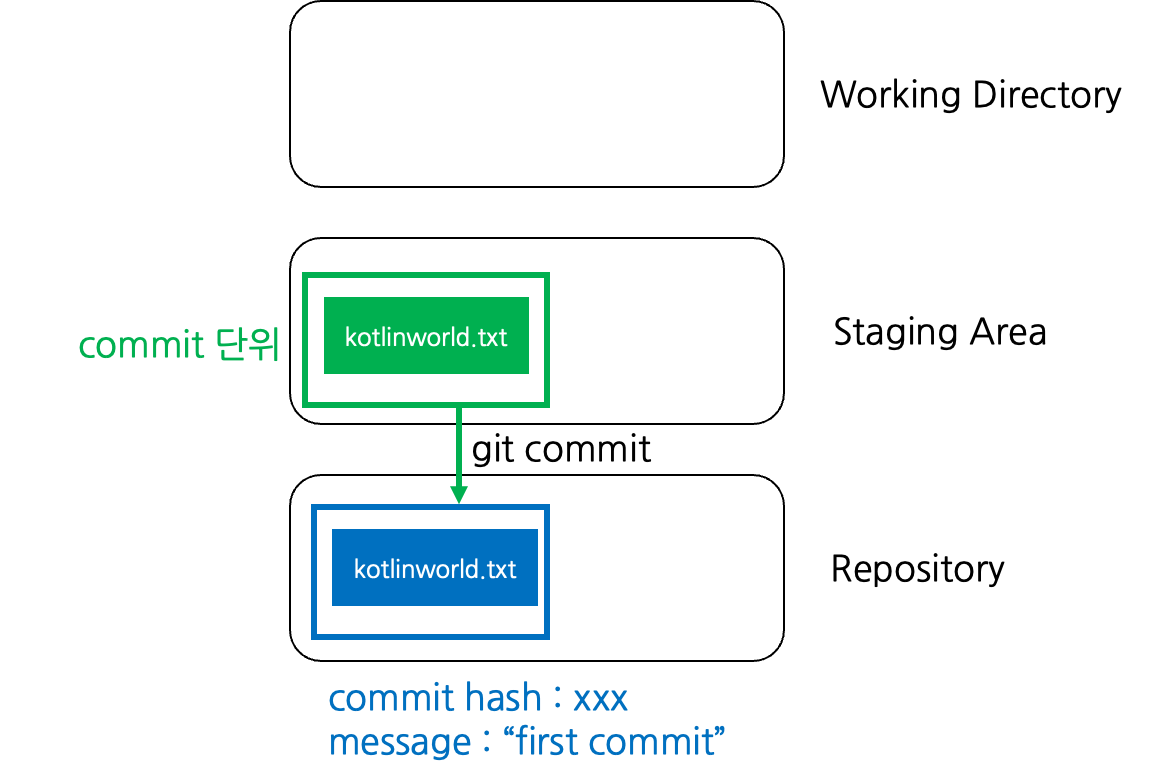 예를 들어 kotlinworld.txt 파일을 이용해 commit이 생겼다고 하자. 우리는 이 commit에 forgottenfile.txt를 더하고 싶다.